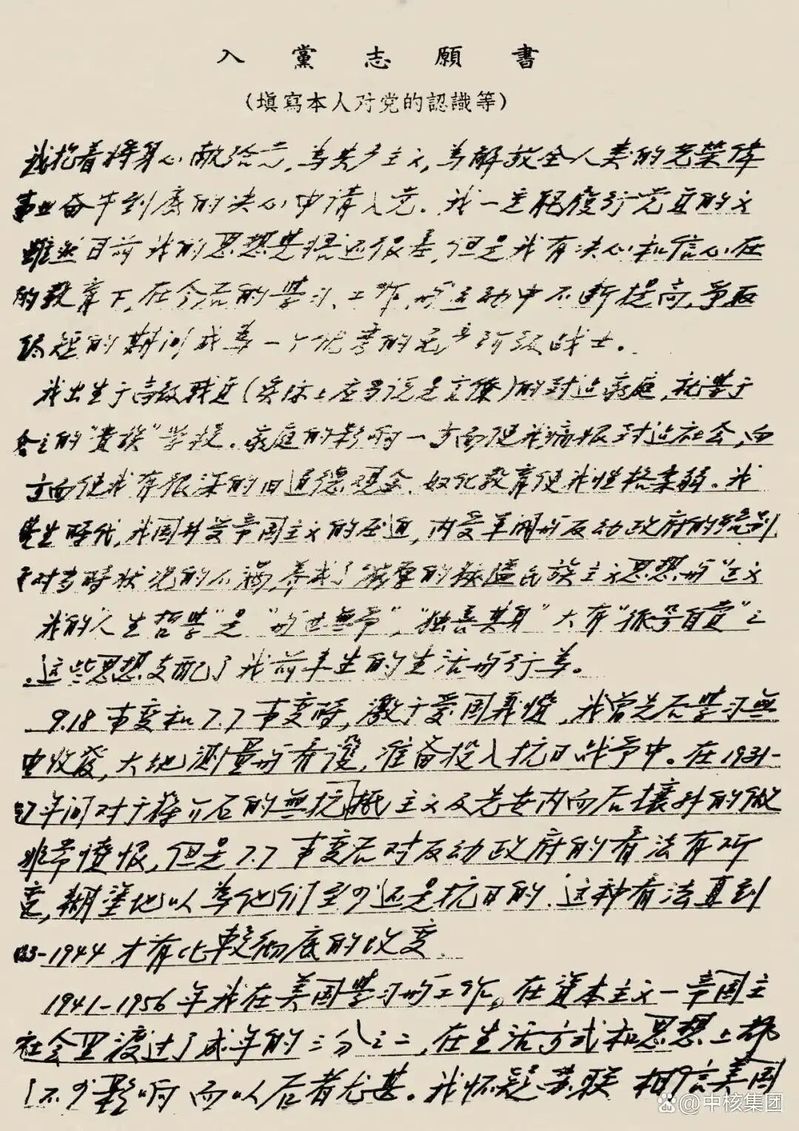 王承书的入党之路,始终与国家命运同频共振。她放弃美国优渥的科研与生活条件,冲破阻碍归国,将顶尖的物理学识投入祖国核事业。在志愿书中,“愿为党和人民的事业贡献一切”的誓言,化作她隐姓埋名三十载的默默坚守。
