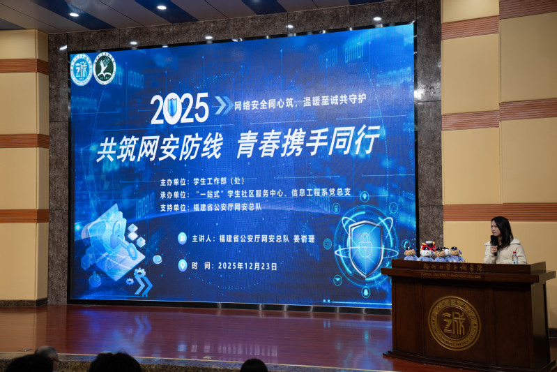 为提升师生网络安全意识,筑牢校园防线。2025年12月23日,福州大学至诚学院信息工程系开展“网络安全同心筑,温暖至诚共守护”主题教育活动。活动特邀福建省公安厅网安总队专家进行专题宣讲,结合典型案例深入剖析,现场互动热烈。学院纪委翁德顺书记、院长助理兼信息工程系主任徐艺文教授、学工部副处长潘梅英等领导全程参与,并与师生进行了深入交流。活动还设置主题户外素质拓展环节,以趣味化、实践性方式巩固知识成效,为营造清朗温暖的校园网络环境奠定基础。