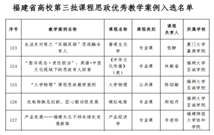 此外,在福建省高校课程思政教育联盟的指导下,经各成员高校申报并由联盟组织专家组评审,我系两位教师陈绍敏、郑旭丹的教学案例分别入选福建省高校第三批课程思政优秀教学案例。