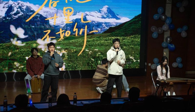 • 乐队表演《春风十里》:悠扬旋律勾勒青春温柔轮廓,吉他声与歌声交织,仿佛将春日浪漫与校园美好娓娓道来,让观众沉浸在治愈氛围中。