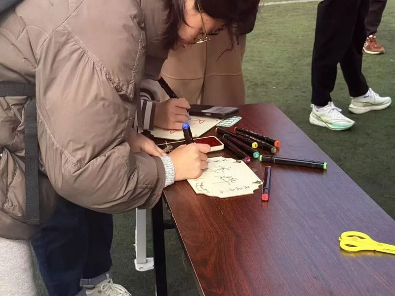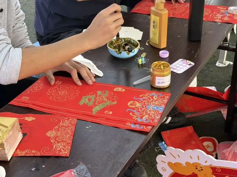 木质挂牌、丙烯颜料、创意春联纸前汇聚了创作的人潮。各宿舍成员巧妙融合专业特色与宿舍文化,或彩绘个性门牌,打造宿舍“专属名片”;或挥毫泼墨书写春联,在笔墨间寄托对新年的美好憧憬。一件件作品不仅装点了门庭,更凝聚了室友间共同的情谊与记忆。