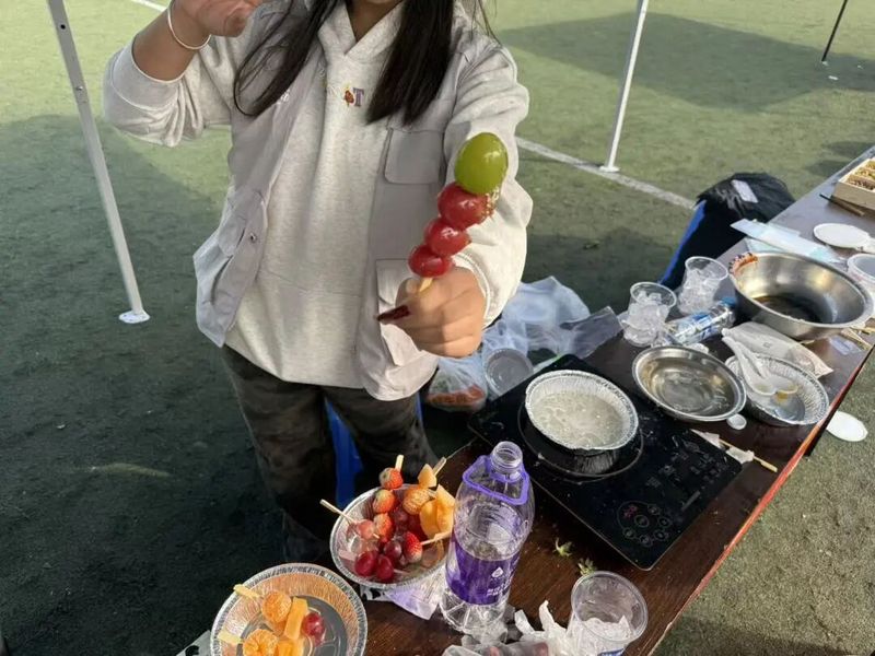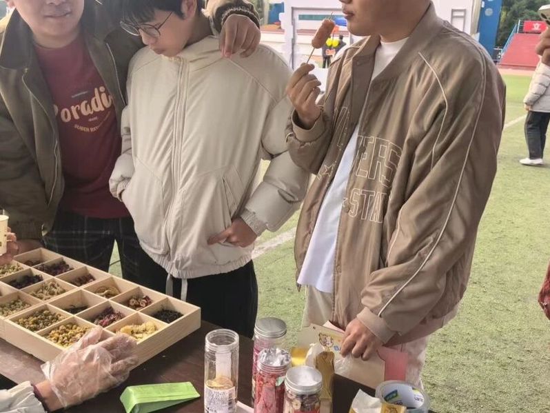 冰糖葫芦DIY区人气十足,串起新鲜山楂草莓,裹上晶莹糖浆,品尝的是亲手制作的团圆味。福气茶包区允许同学们自选配料,并将“安康”“喜乐”等祝愿写入茶签,制作专属暖饮。零食福袋更是让大家将琳琅满目的年味糖果饼干带回宿舍,分享甜蜜。