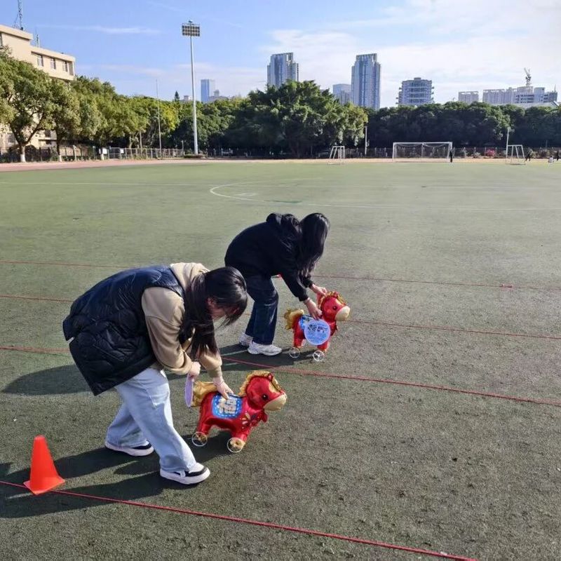 以宿舍为单位的闯关游戏热火朝天。“驭马追风”需巧用红扇驾驭气球马前进;“双马同行”考验两人背靠背运送气球的默契;“跃马闯阵”则是精准击倒马年主题保龄球瓶的挑战。现场欢呼与加油声不断,室友情谊在协作中悄然升华。
