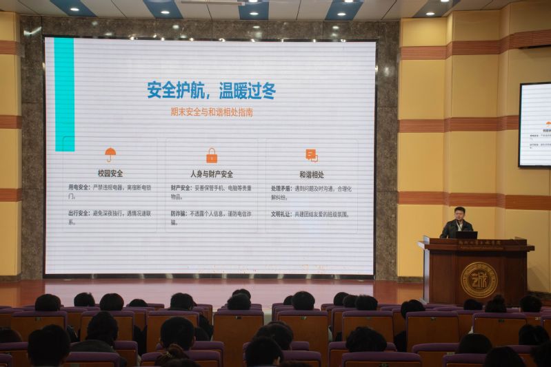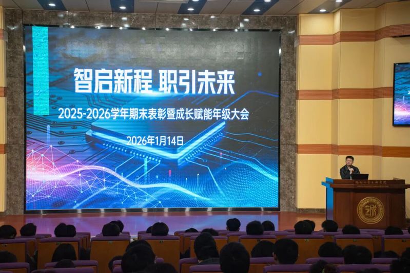 为助力同学们筑牢学业安全根基、把握行业发展趋势、凝聚奋进成长力量,2026 年1月14日,信息工程系 2024 级2025-2026学年秋季学期期末表彰暨成长赋能年级大会顺利举行。大会围绕 “学业安全保障”“趋势规划指引”“先进榜样激励” 三大核心维度,涵盖期末备考与诚信、校园及假期安全、AI 前沿动态、职业规划指引、先进表彰等关键内容,为同学们送上兼具实用性与前瞻性的成长指南,凝聚起勤学笃行、安全自律、勇立潮头的青春力量。