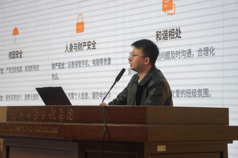 会议伊始,辅导员谢水旺老师着重强调期末高效备考的重要性,鼓励同学们紧扣课程重点梳理知识框架,选择高效学习环境,主动开展 “互助式” 学习,在交流探讨中深化理解、携手共进。同时提醒同学们,专注学业之余需保持良好心态,通过合理方式缓解焦虑情绪。考试纪律方面,辅导员重申作弊的严重后果,倡导同学们以真才实学诚信应考。