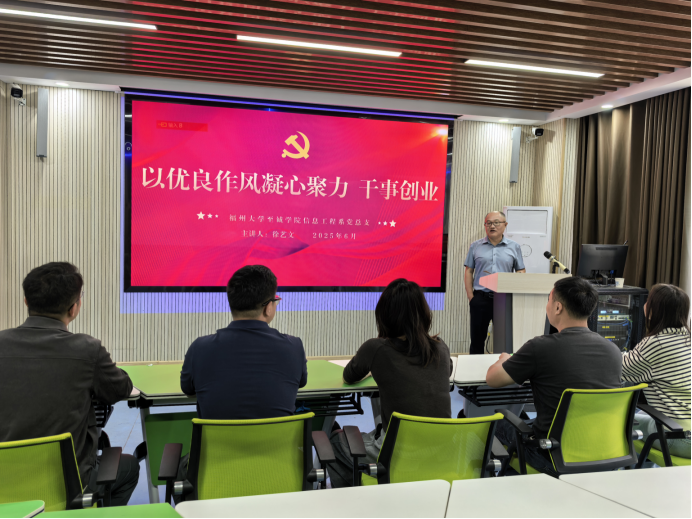 为深入贯彻中央八项规定精神学习教育,6月25日下午,院长助理、信息工程系系主任徐艺文教授在地矿207为联系单位师生党员进行主题为 《以优良作风凝心聚力干事创业》专题党课。